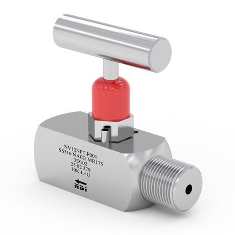 €18,95 EURUnit price /Unavailable1/2in NPT NEEDLE VALVE, 10,000psi SOUR SERVICE, -50F/250F, (316SS)